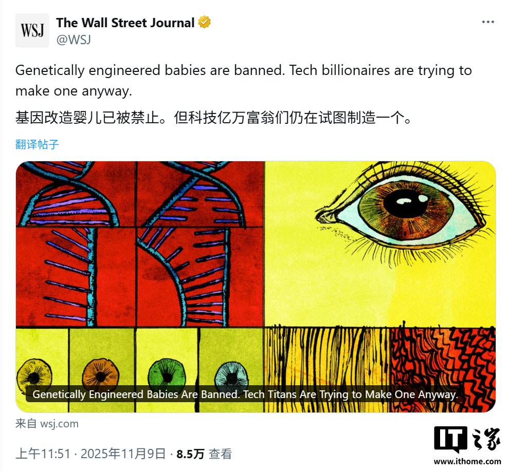 IT之家 11 月 10 日音书,华尔街日报于 11 月 8 日发布博文开云体育,报谈称由 OpenAI 首席履行官山姆・奥尔特曼及 Coinbase 首席履行官布莱恩・阿姆斯特朗等科技巨头投资的初创公司 Preventive,正奥妙鼓动一项创造“基因裁剪婴儿”的讨论。